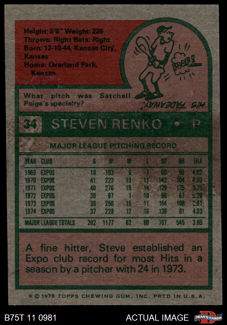 1975 Topps #34 Steve Renko 6 - EX/MT