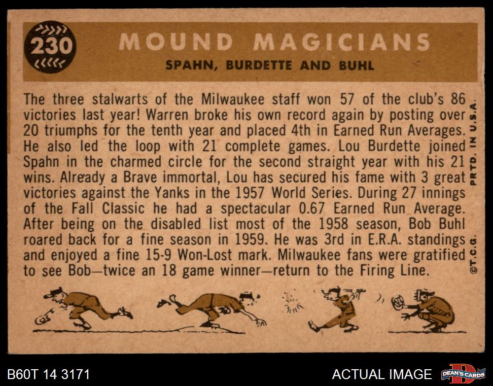 1960 Topps #230 - Lew Burdette / Warren Spahn / Bob Buhl Mound Magicians 2 - GOOD