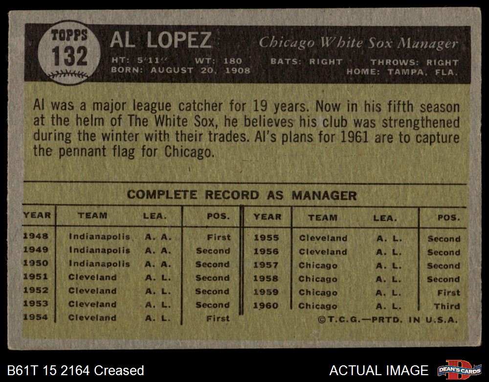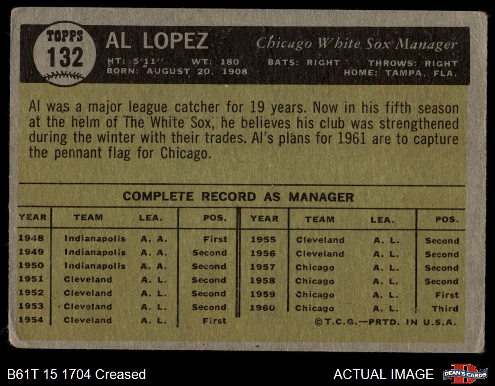 1961 Topps #132 Al Lopez