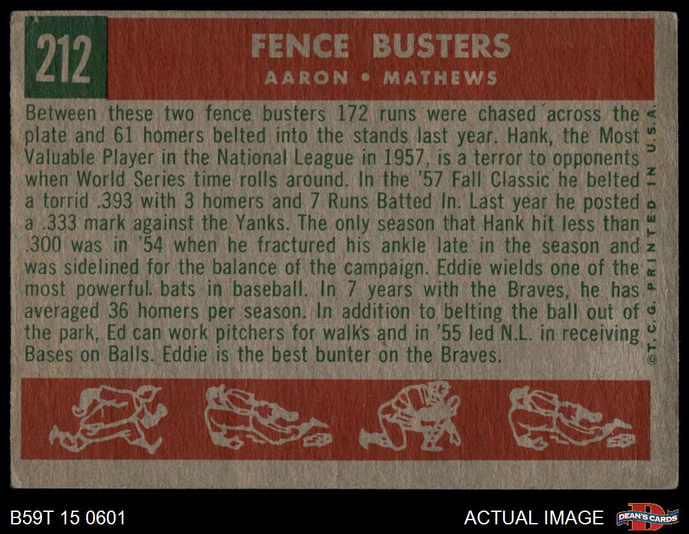 1959 Topps #212 - Hank Aaron / Eddie Mathews Fence Busters 1.5 - FAIR