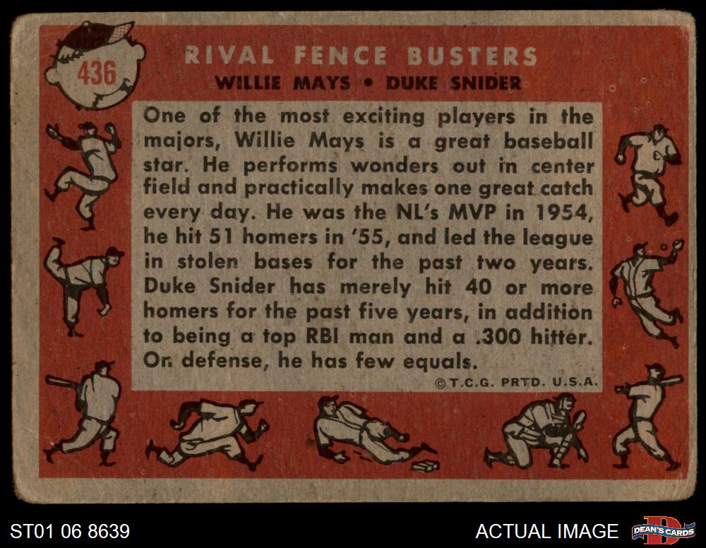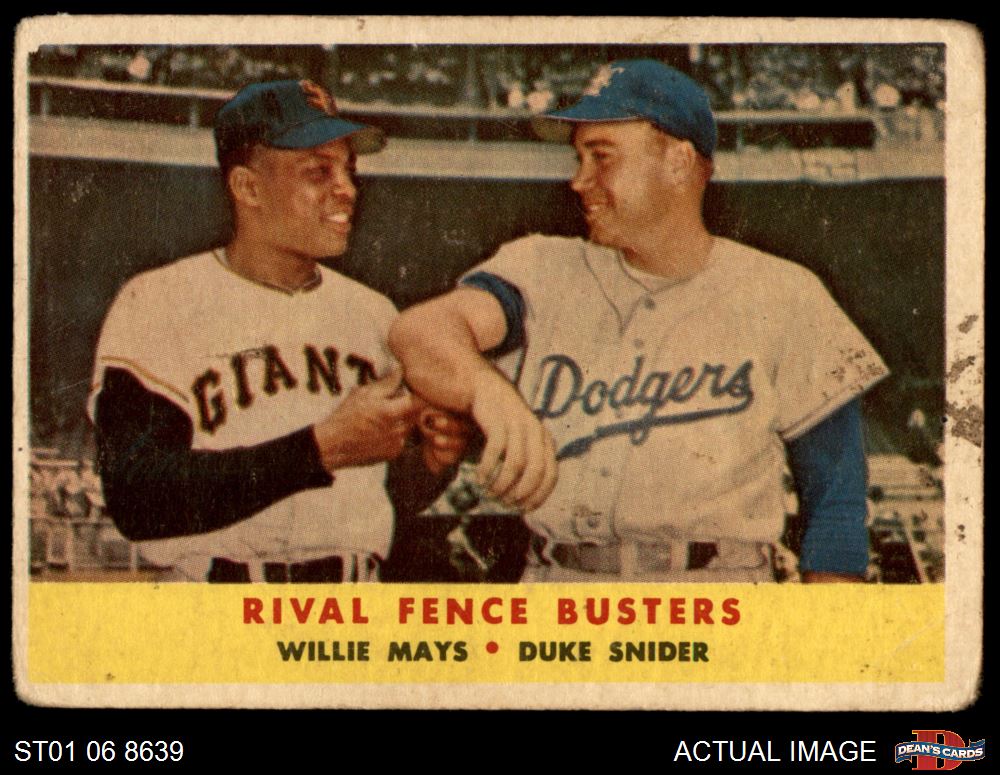 1958 Topps #436 - Willie Mays / Duke Snider Rival Fence Busters 1 - POOR