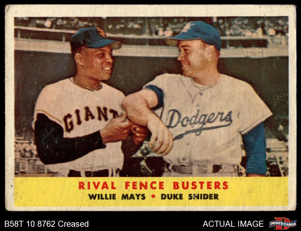 1958 Topps #436 - Willie Mays / Duke Snider Rival Fence Busters 2 - GOOD