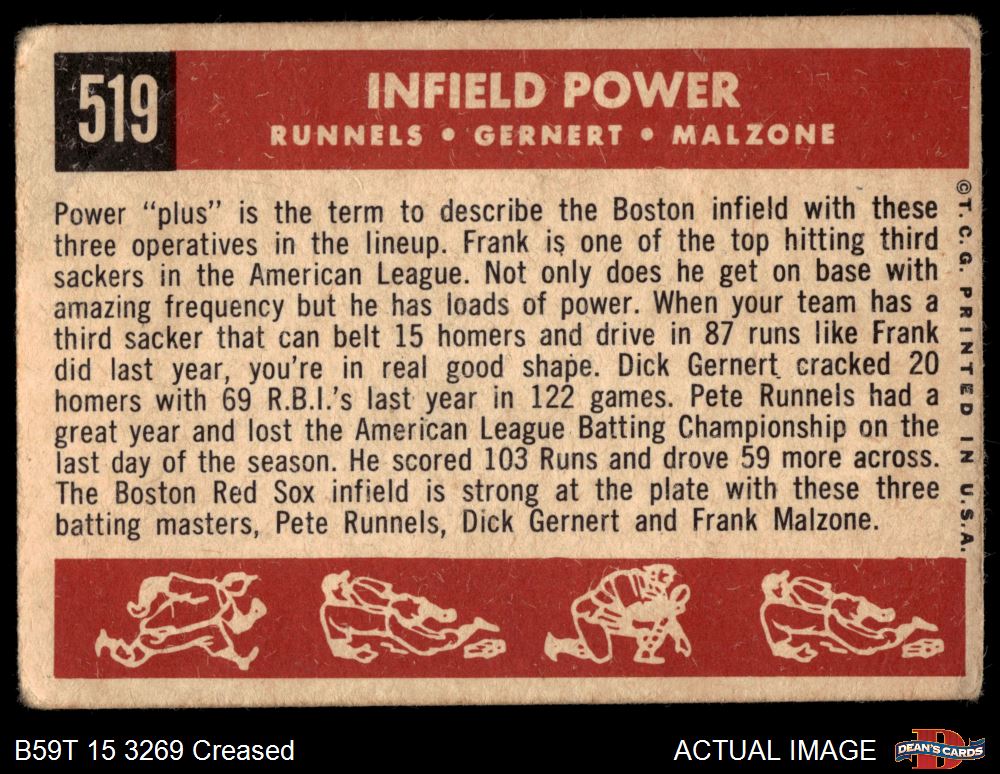 1959 Topps #519 - Pete Runnels / Dick Gernert / Frank Malzone Infield Power 1 - POOR