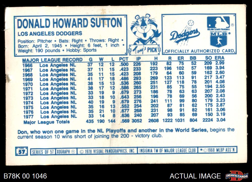 1978 Kellogg's #57 Don Sutton 4 - VG/EX