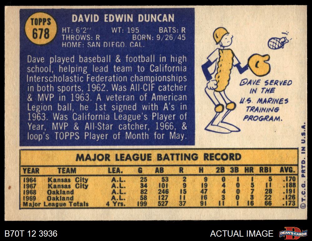 1970 Topps #678 Dave Duncan 7 - NM
