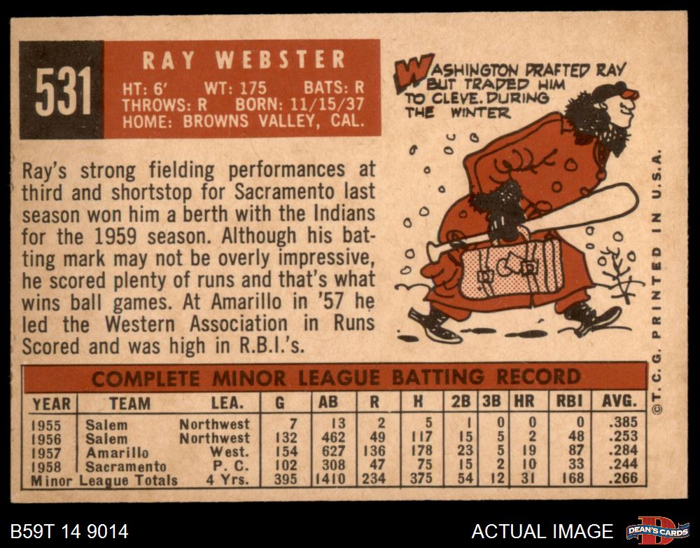 1959 Topps #531 Ray Webster 4 - VG/EX