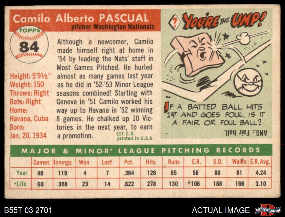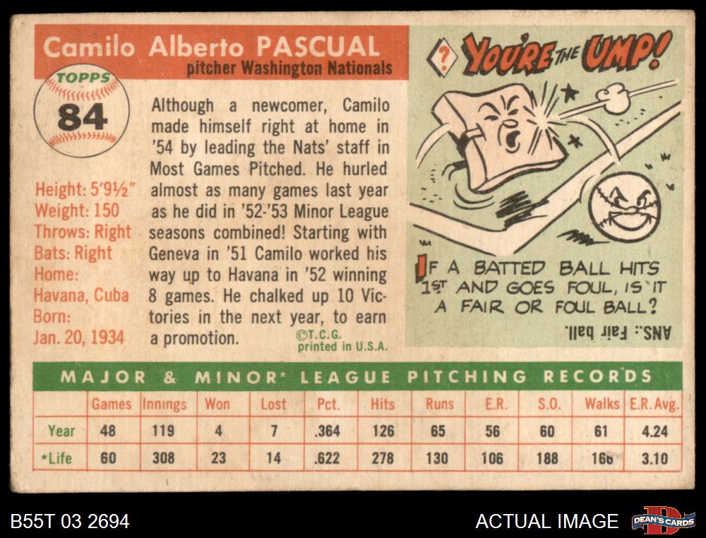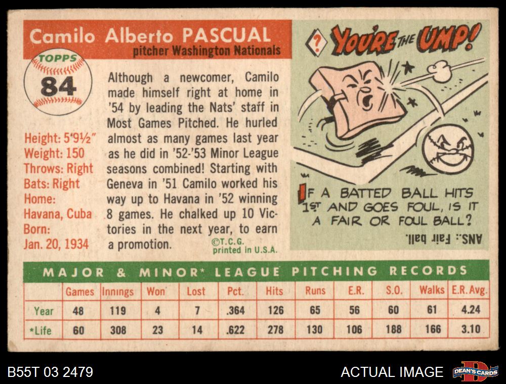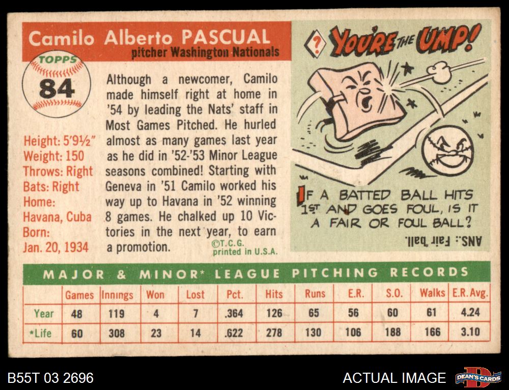 1955 Topps #84 Camilo Pascual 2 - GOOD