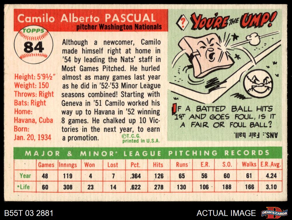 1955 Topps #84 Camilo Pascual 3.5 - VG+