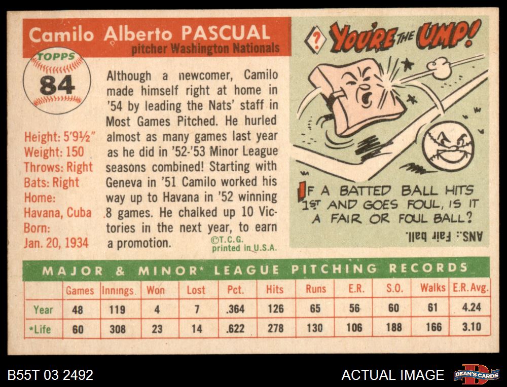 1955 Topps #84 Camilo Pascual 4 - VG/EX