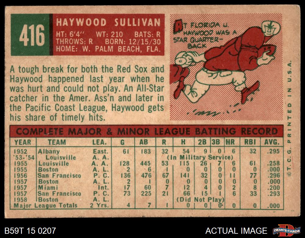 1959 Topps #416 xDOT Haywood Sullivan 3 - VG