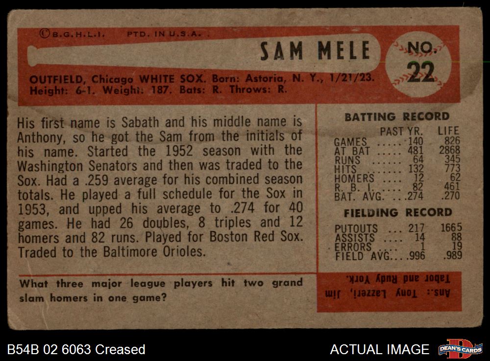 1954 Bowman Baseball Cards (2,254 available)1954 Bowman White Sox (161 available)