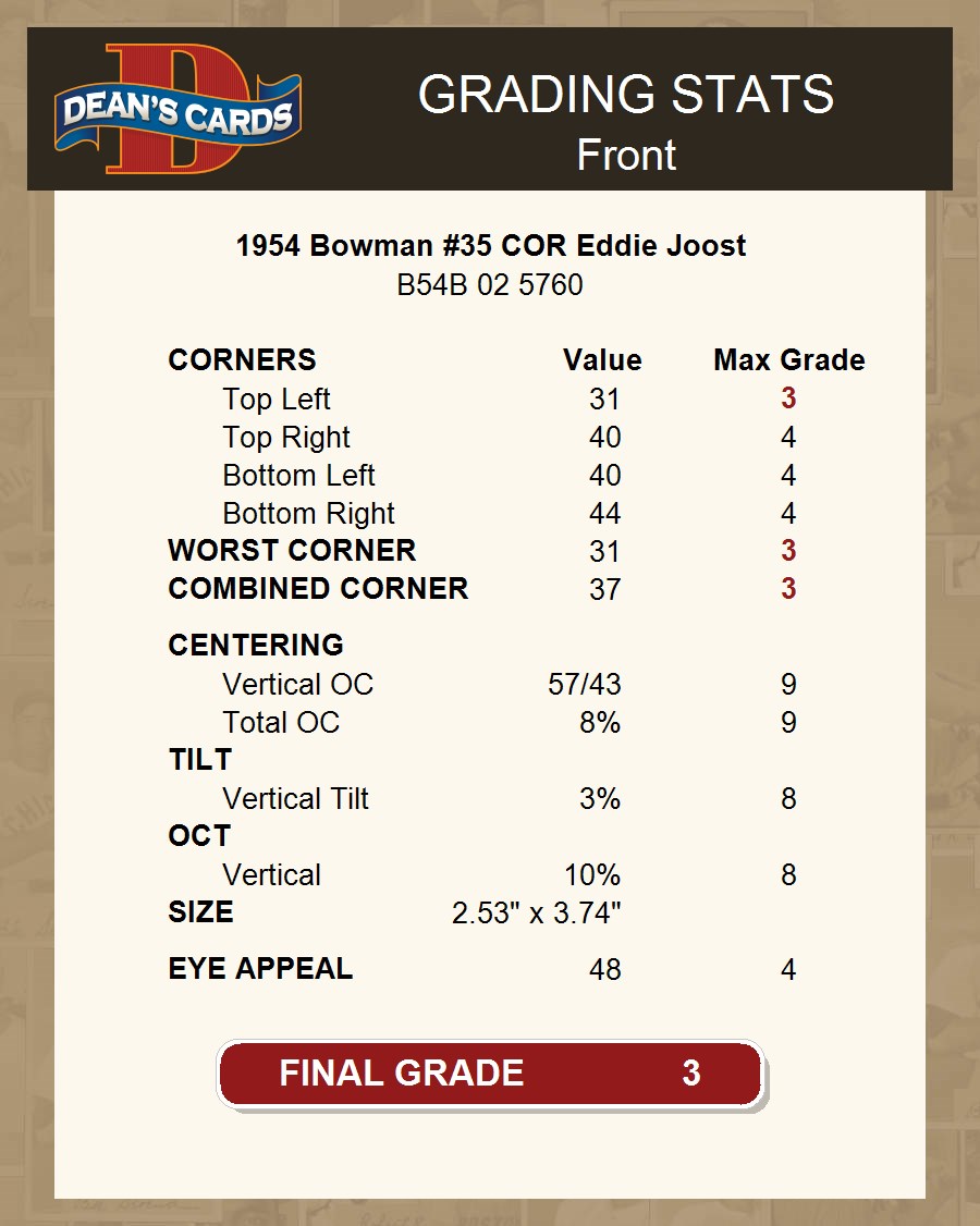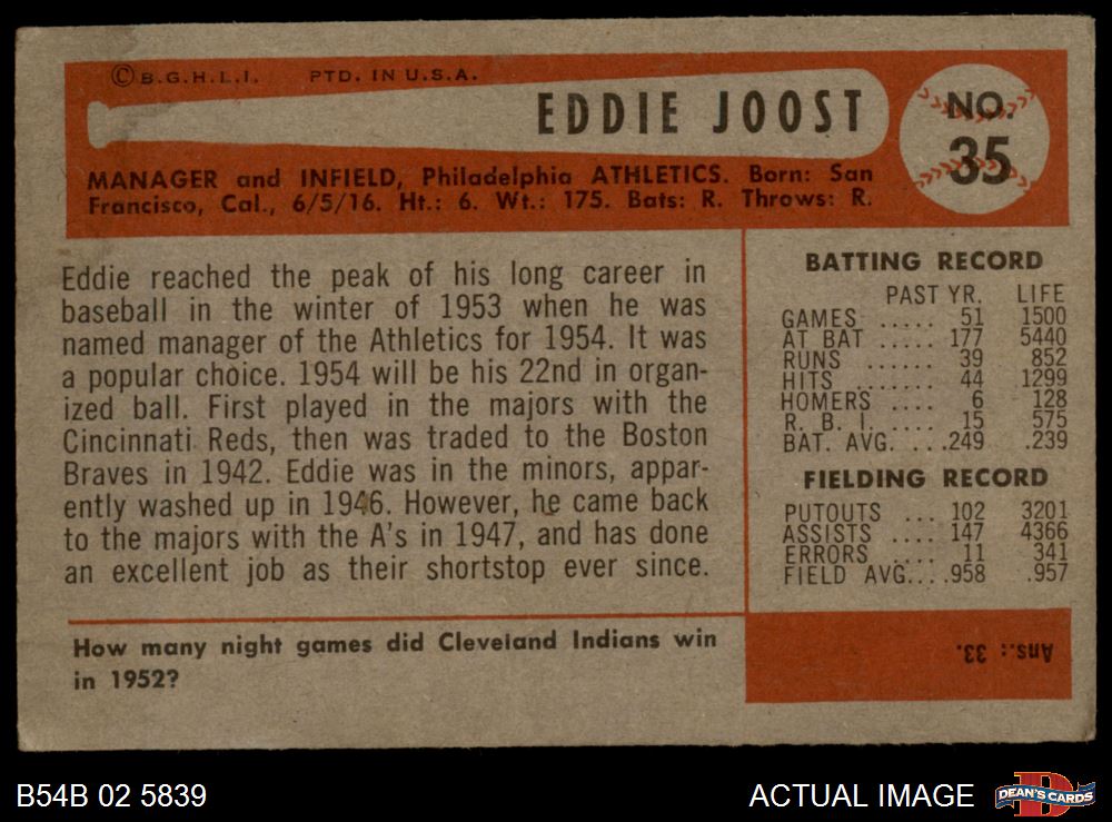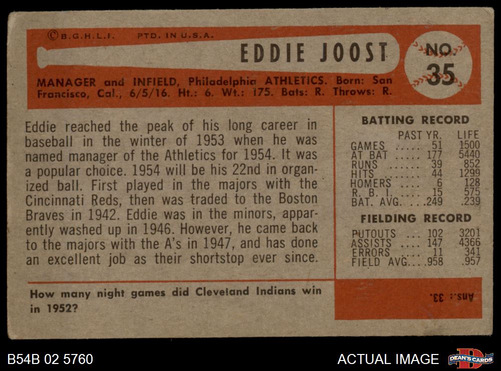 1954 Bowman #35 COR Eddie Joost 3 - VG