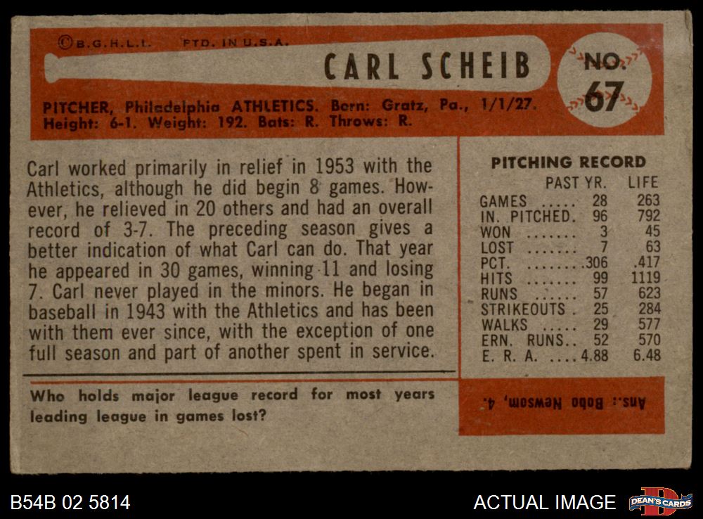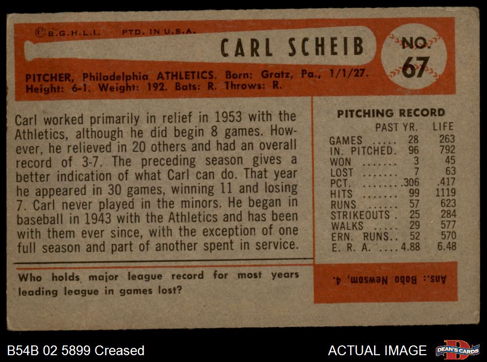 1954 Bowman #67 ERR1 Carl Scheib 2 - GOOD