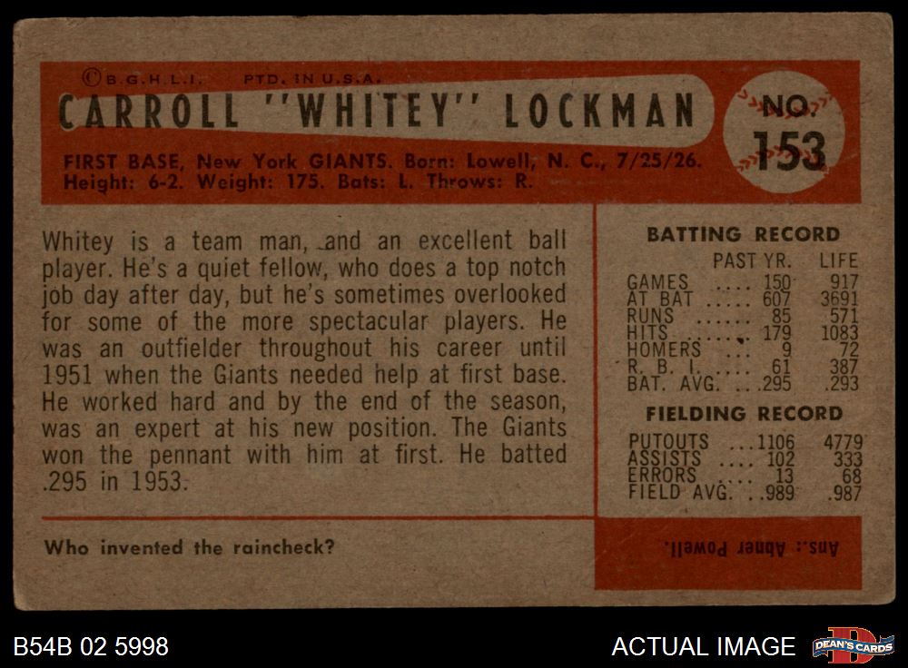 1954 Bowman #153 ALL Whitey Lockman 2 - GOOD