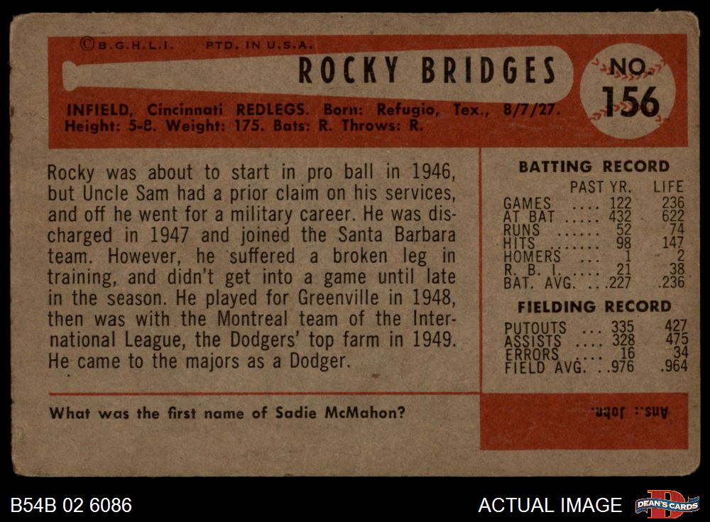 1954 Bowman #156 ALL Rocky Bridges 1.5 - FAIR