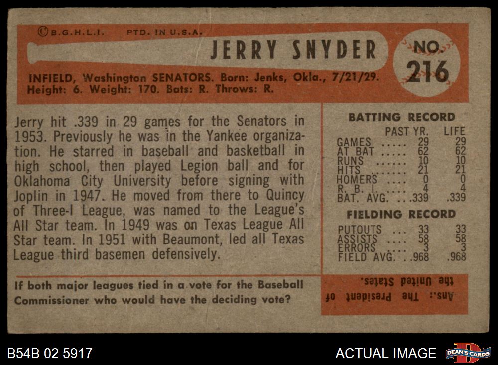 1954 Bowman #216 ALL Jerry Snyder 1.5 - FAIR