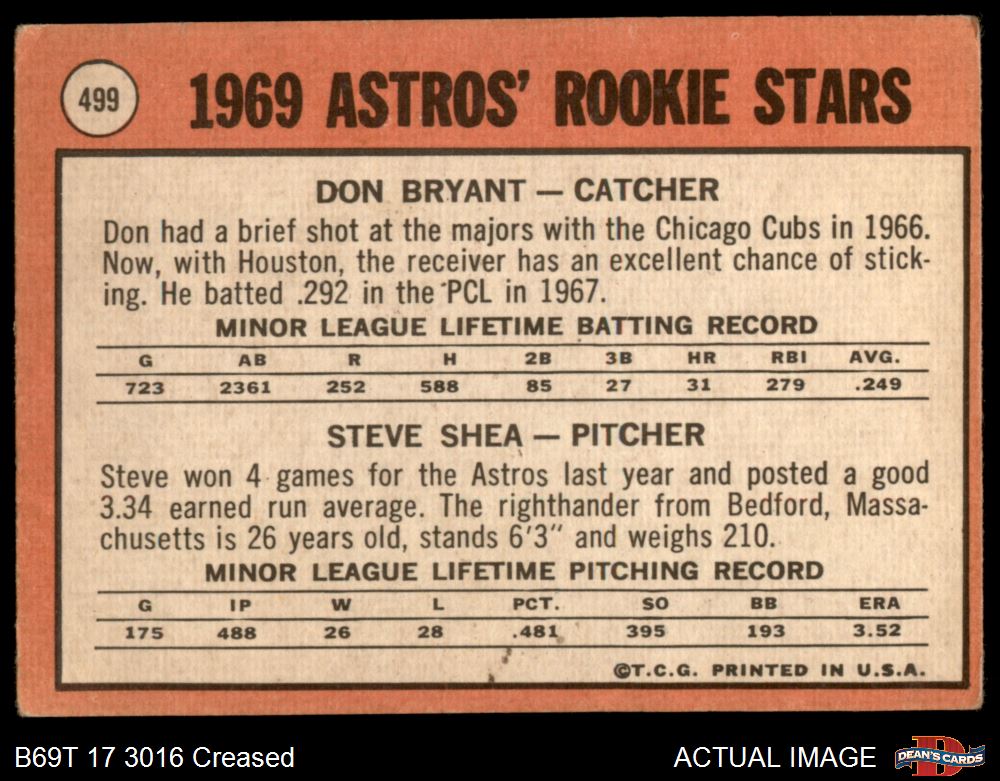 1969 Topps #499 - Don Bryant / Steve Shea Astros Rookies 1.5 - FAIR