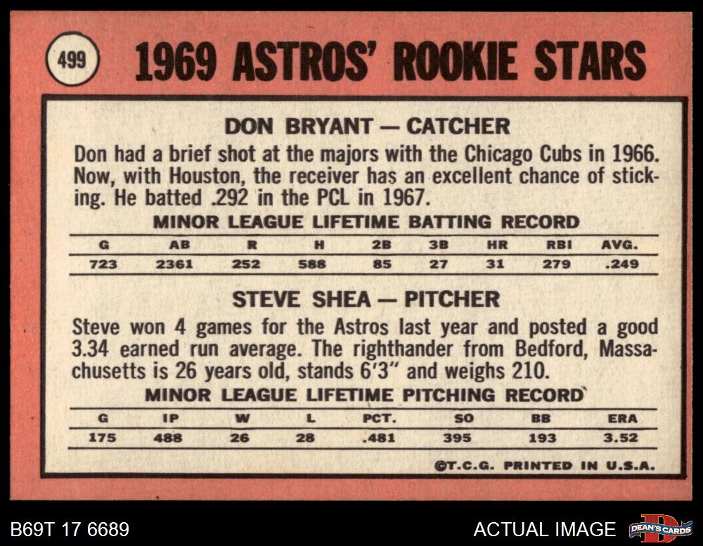 1969 Topps #499 - Don Bryant / Steve Shea Astros Rookies 6 - EX/MT