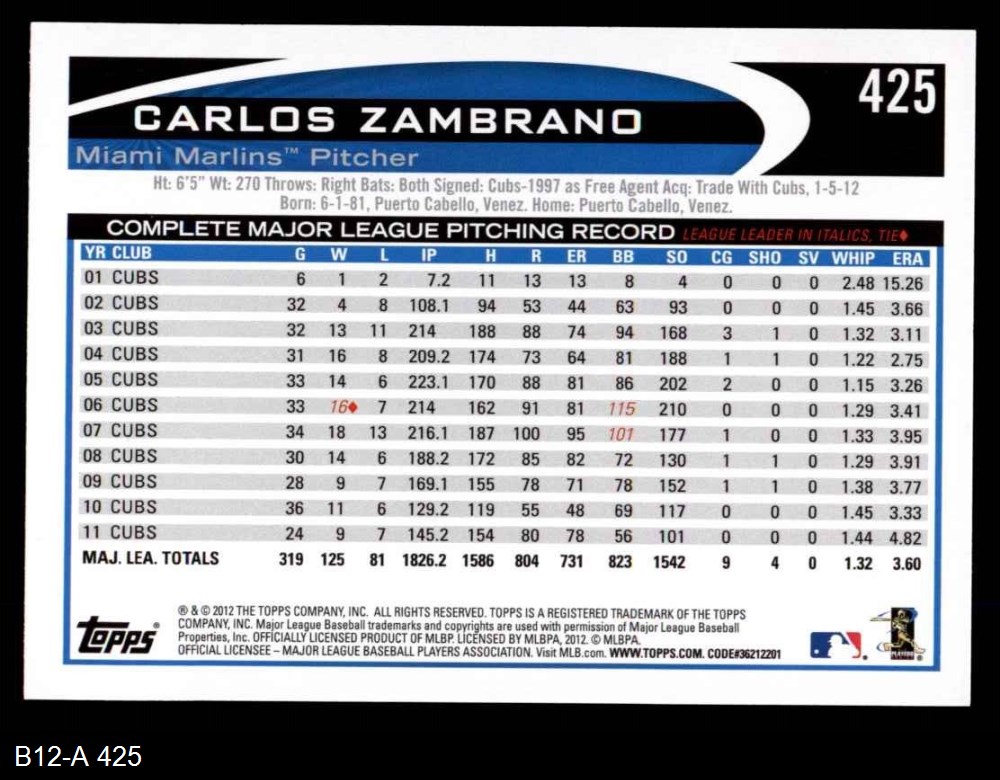 2012 Topps #425 Carlos Zambrano