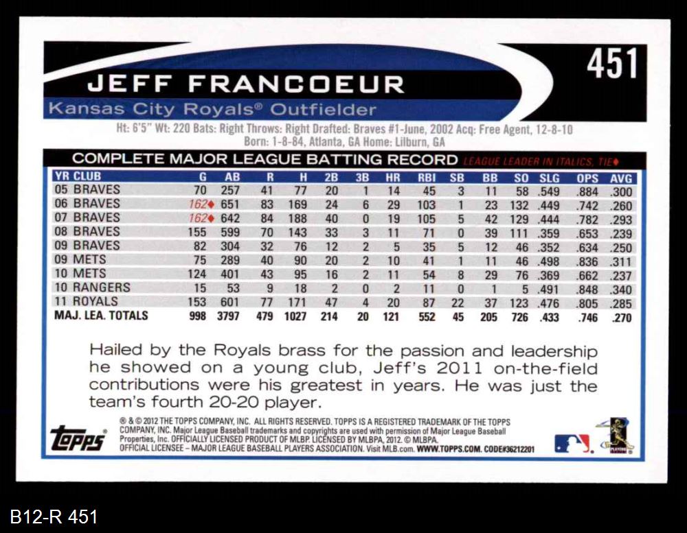 2012 Topps #451 Jeff Francoeur 8 - NM/MT