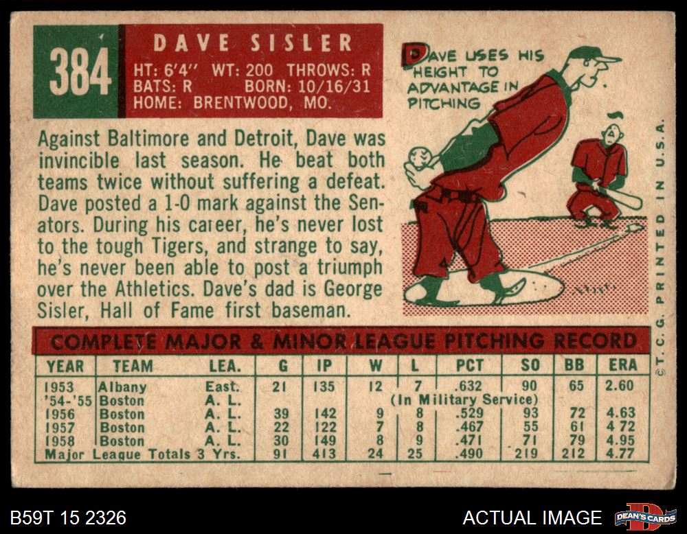 1959 Topps #384 Dave Sisler 3 - VG