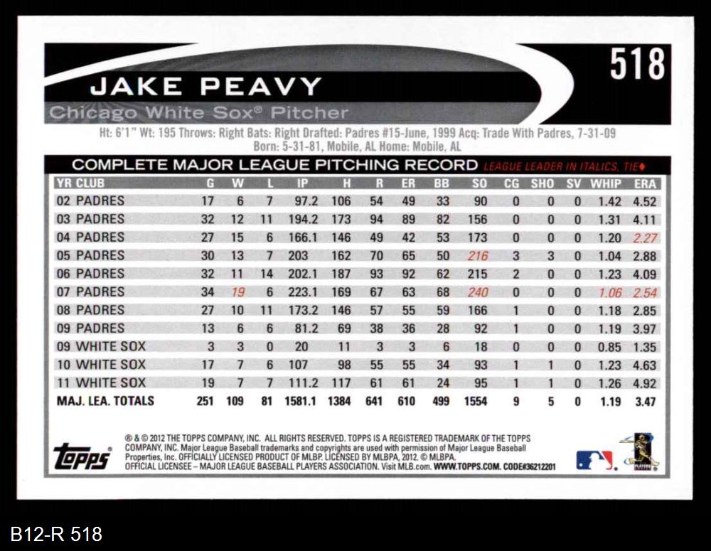 2012 Topps #518 Jake Peavy
