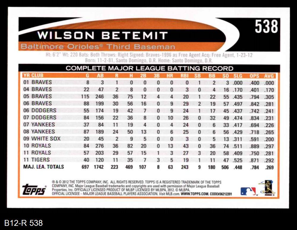 2012 Topps Baseball Cards (2,515 available)2012 Topps Orioles (184 available)