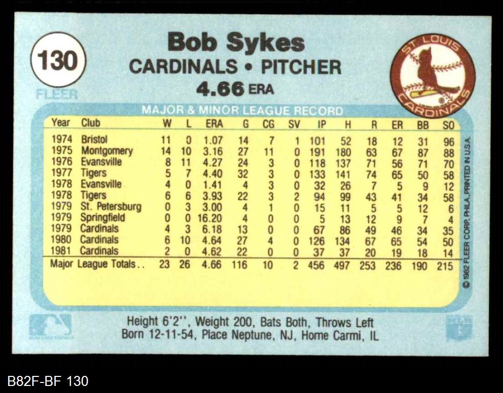 1982 Fleer #130 Bob Sykes 8 - NM/MT