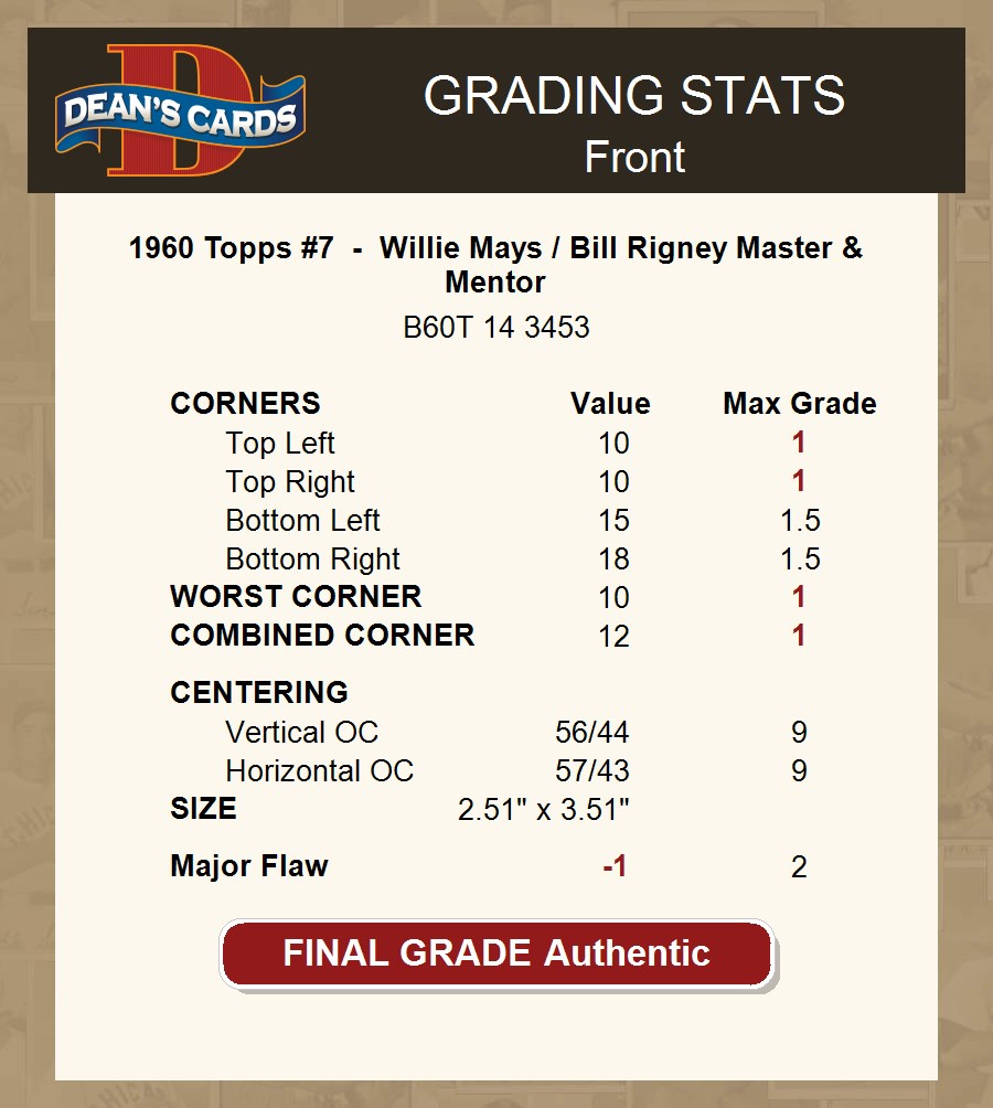 1960 Topps #7 - Willie Mays / Bill Rigney Master & Mentor AUTHENTIC