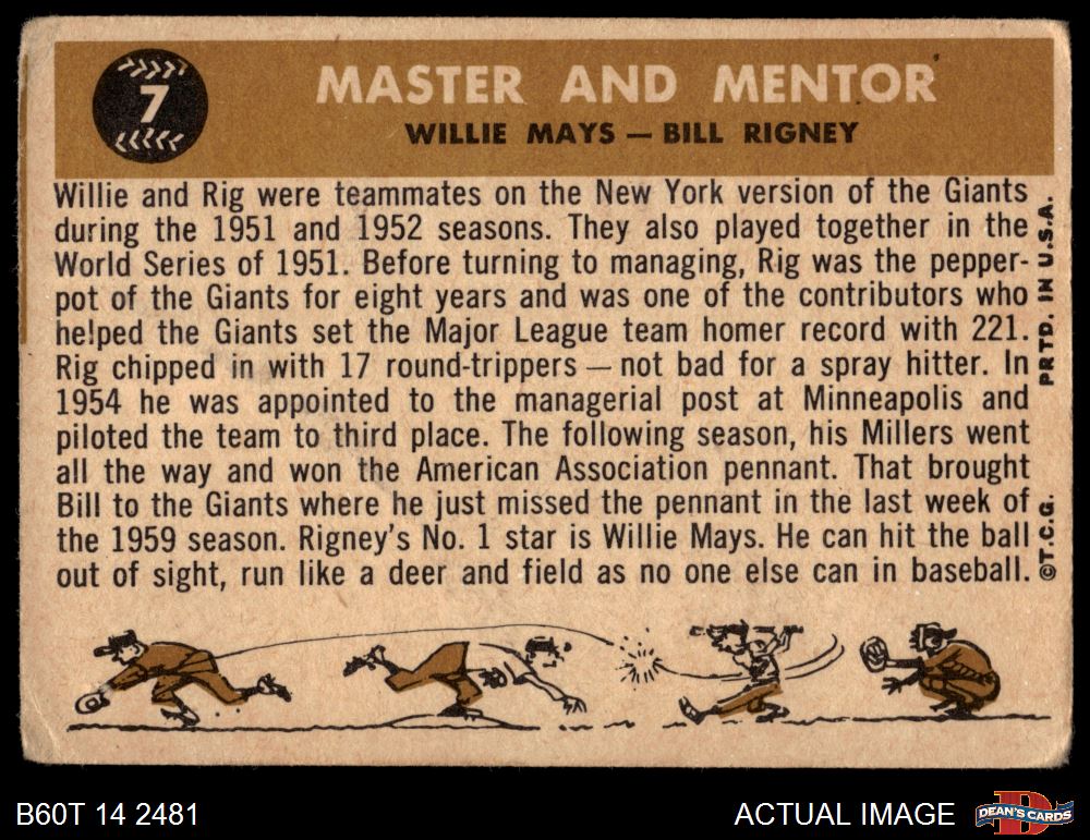 1960 Topps #7 - Willie Mays / Bill Rigney Master & Mentor 1 - POOR