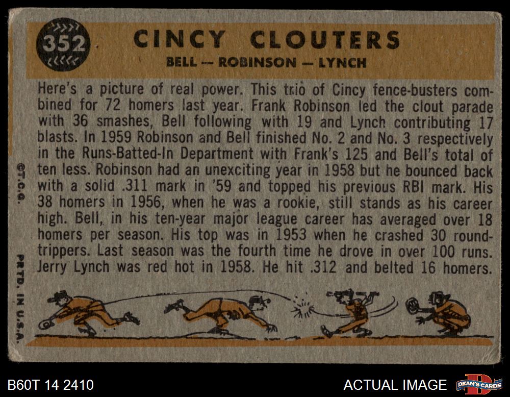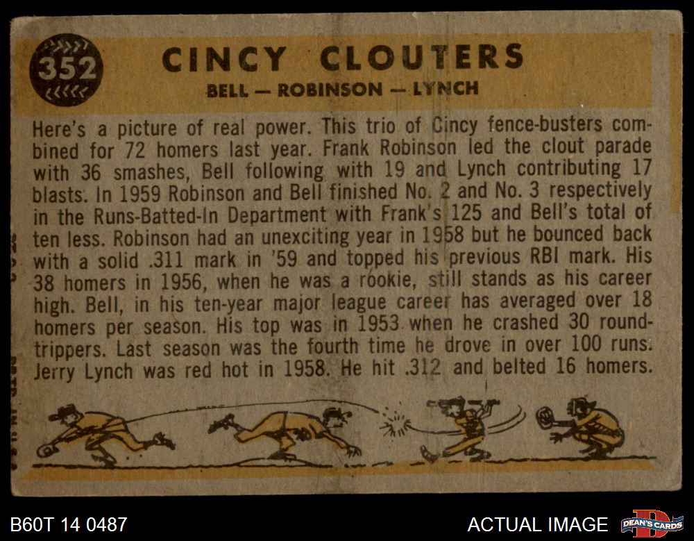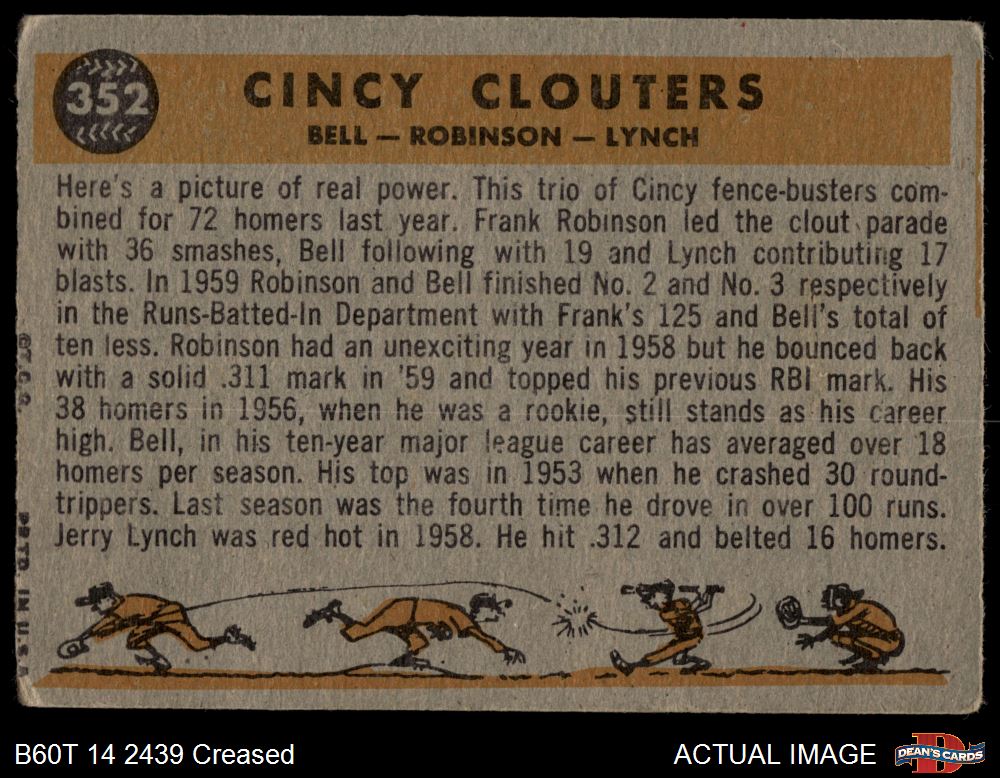 1960 Topps #352 - Gus Bell / Frank Robinson / Jerry Lynch Cincy Clouters 1.5 - FAIR