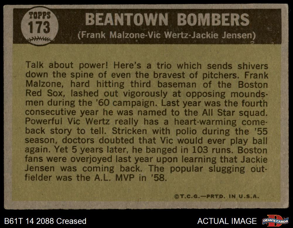 1961 Topps #173 Beantown Bombers