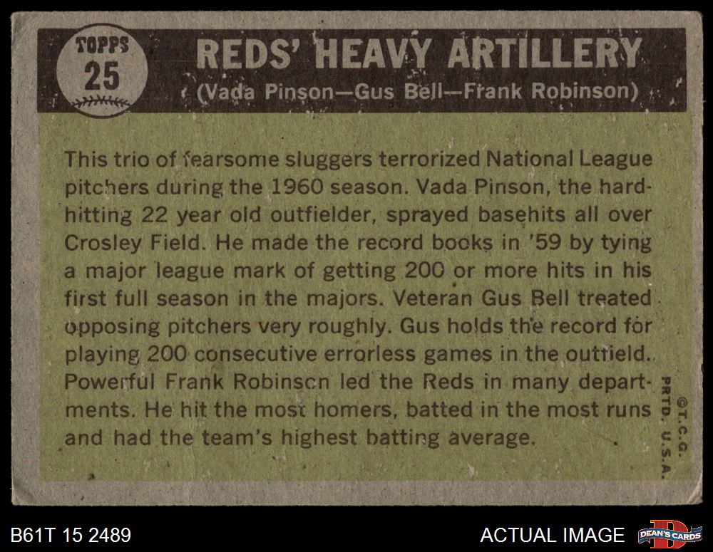1961 Topps #25 - Frank Robinson / Vada Pinson / Gus Bell Reds Heavy Artillery 1.5 - FAIR