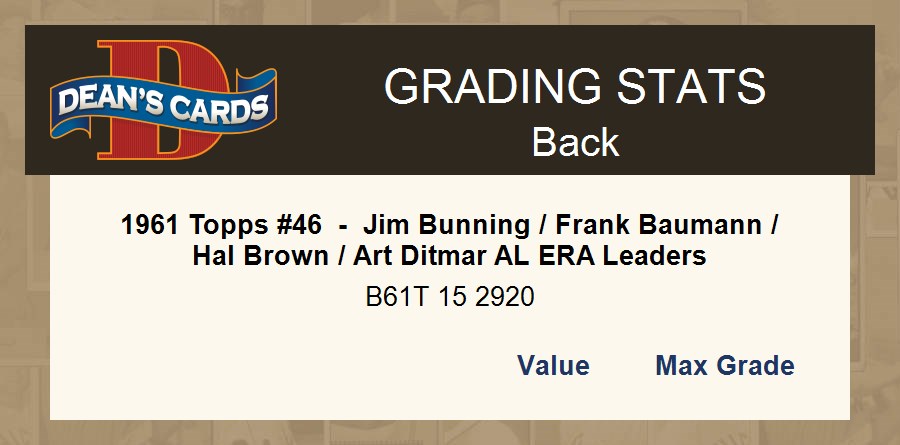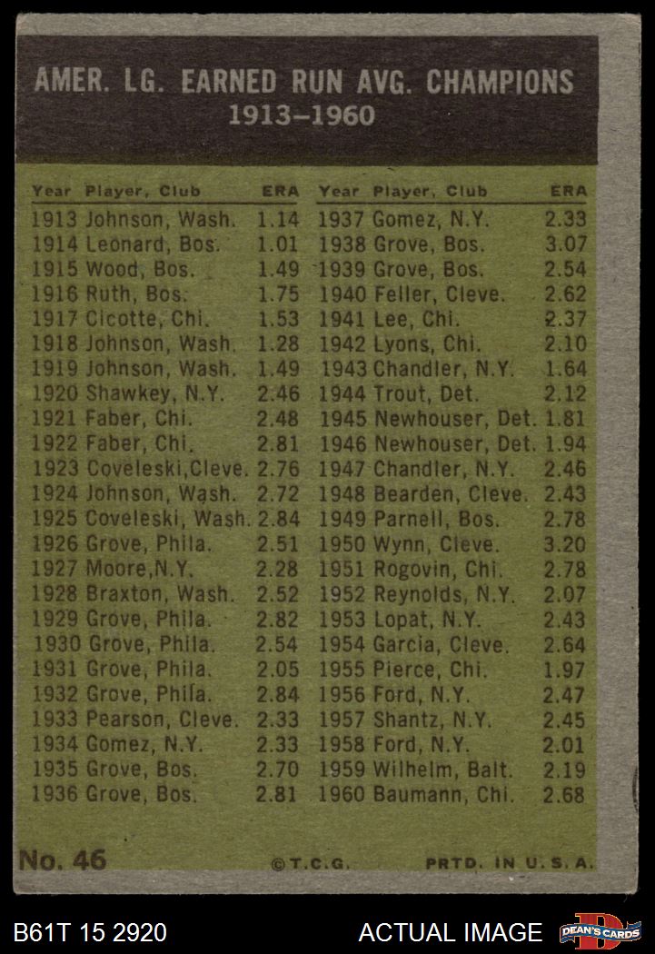 1961 Topps #46 AL ERA Leaders