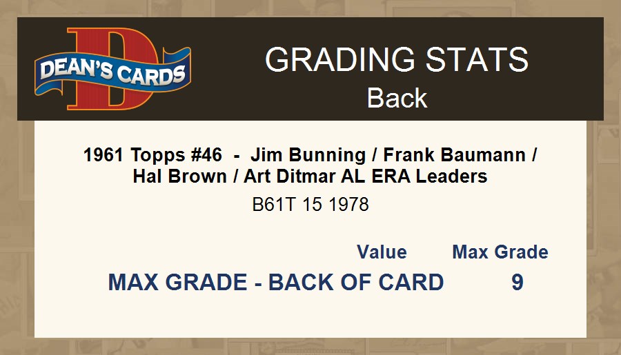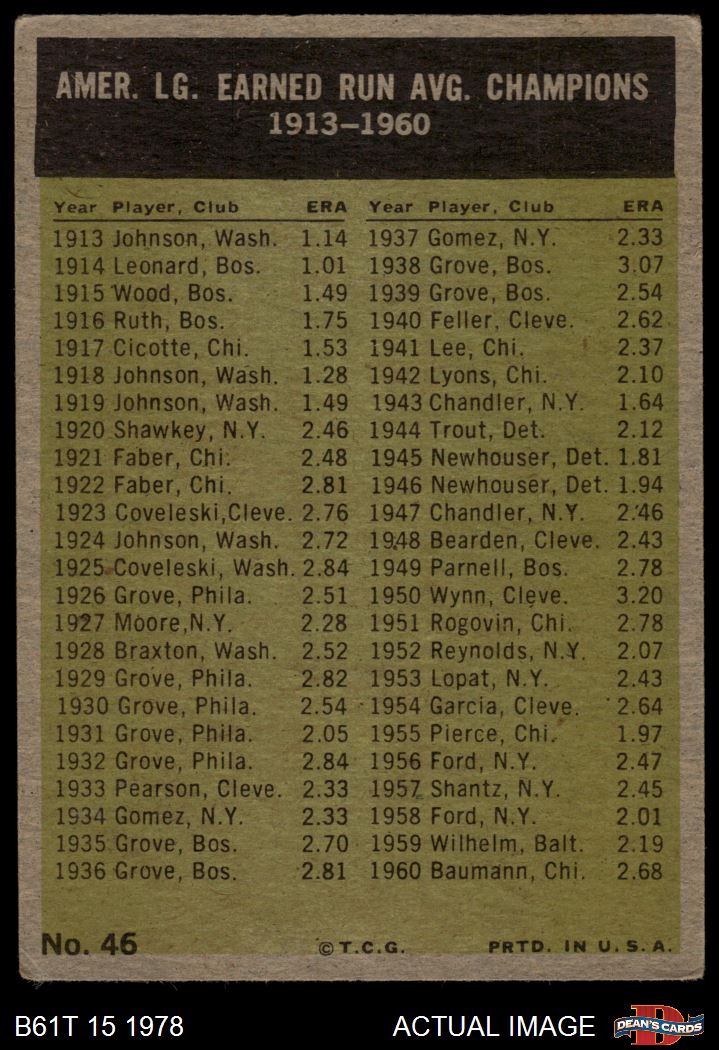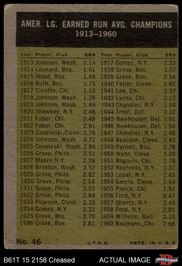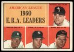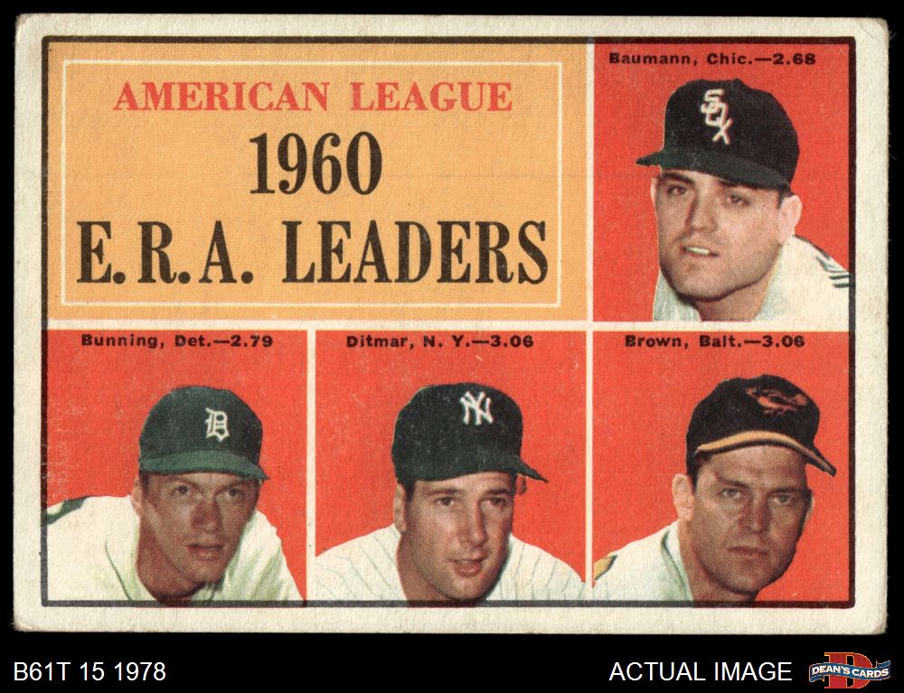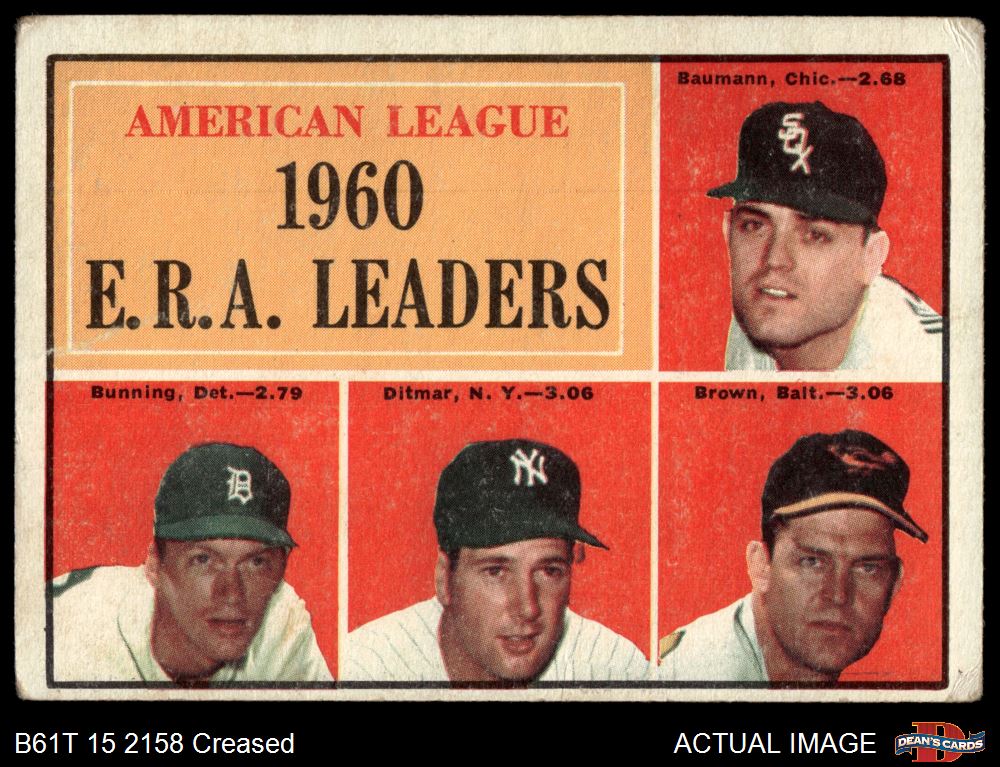 1961 Topps #46 - Jim Bunning / Frank Baumann / Hal Brown / Art Ditmar AL ERA Leaders 2 - GOOD