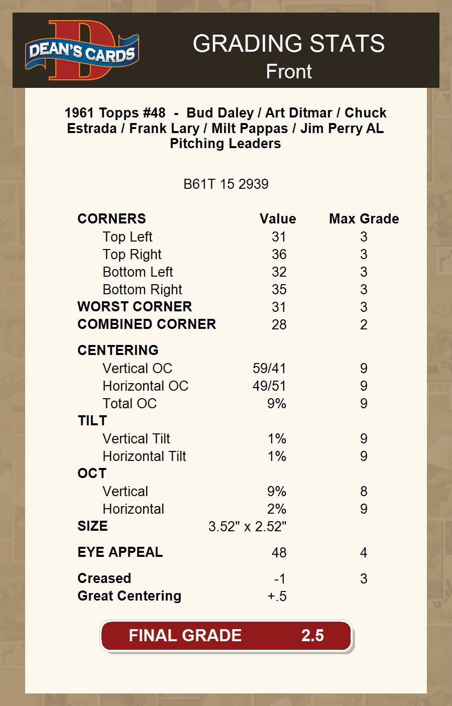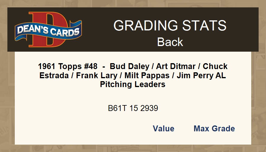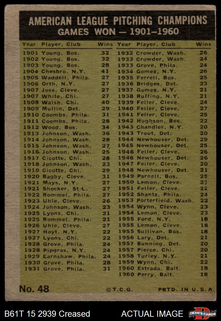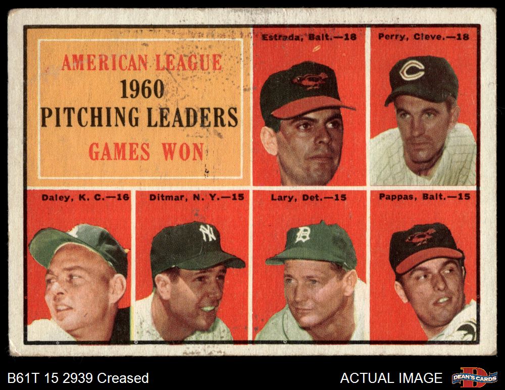 1961 Topps #48 - Bud Daley / Art Ditmar / Chuck Estrada / Frank Lary / Milt Pappas / Jim Perry AL Pitching Leaders 2.5 - GD+