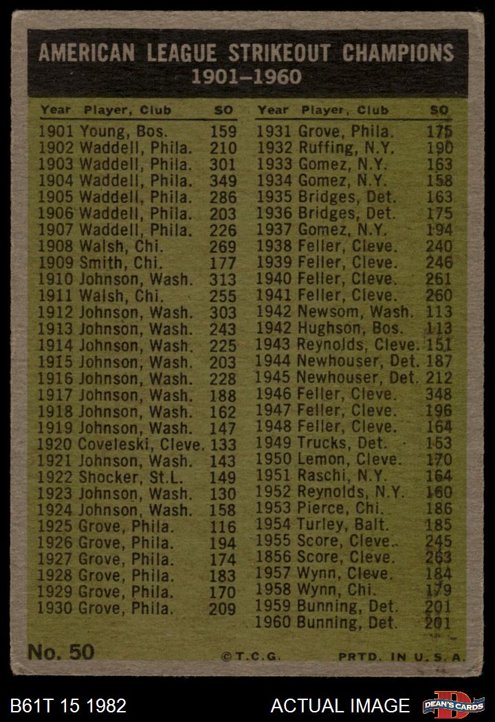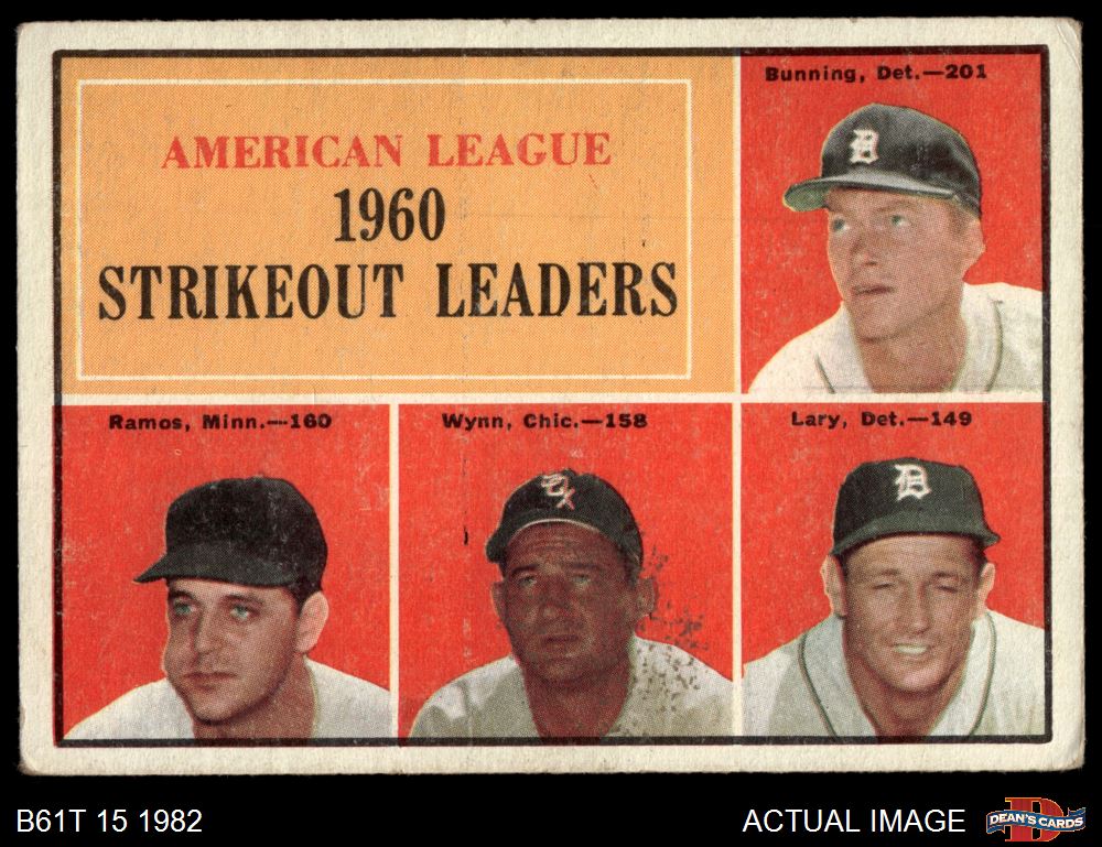 1961 Topps #50 - Jim Bunning / Frank Lary / Pedro Ramos / Early Wynn AL Strikeout Leaders 2.5 - GD+