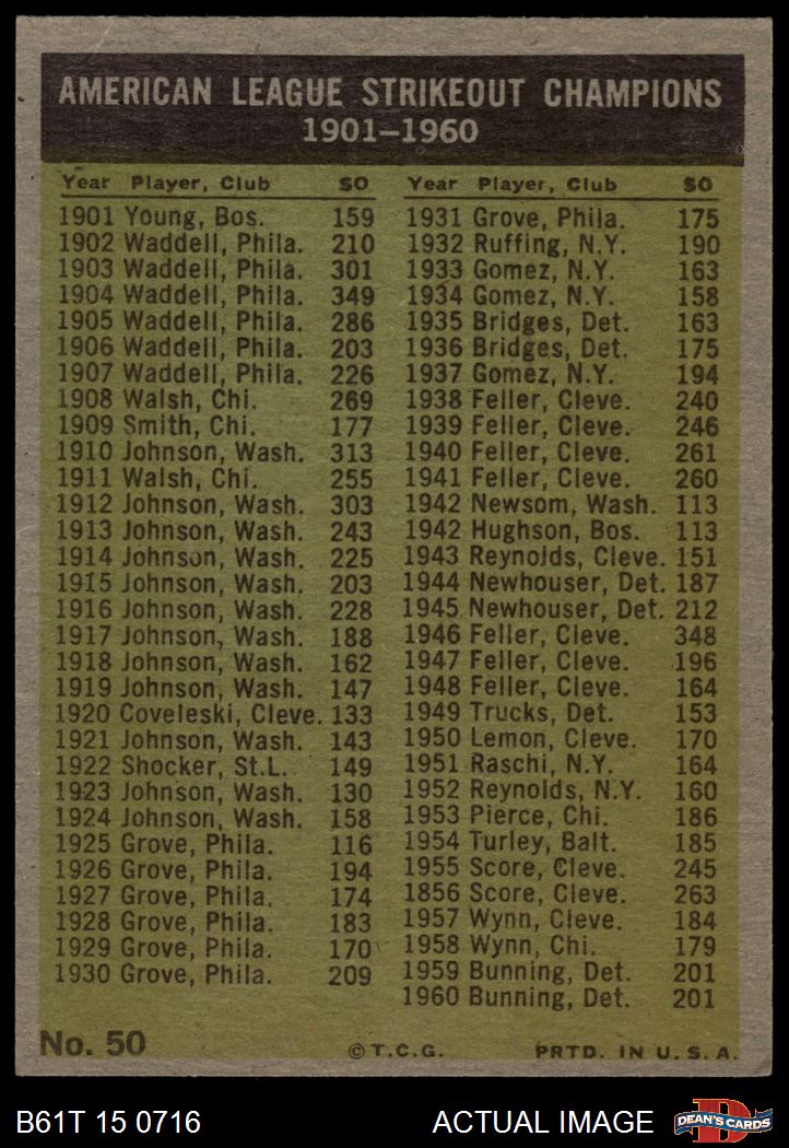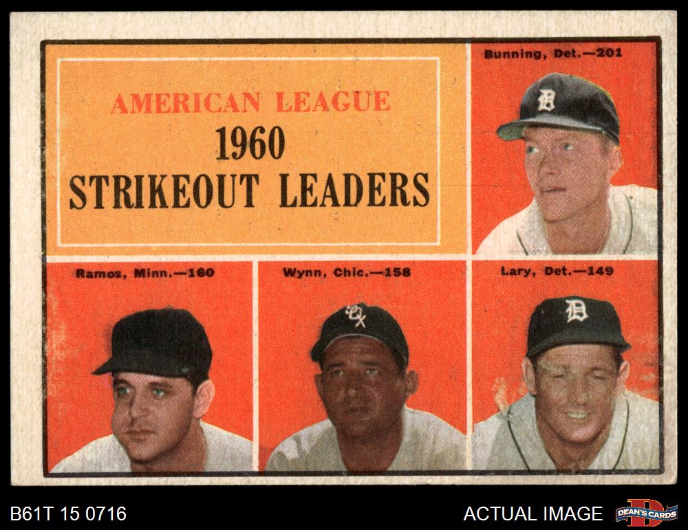 1961 Topps #50 - Jim Bunning / Frank Lary / Pedro Ramos / Early Wynn AL Strikeout Leaders 3 - VG