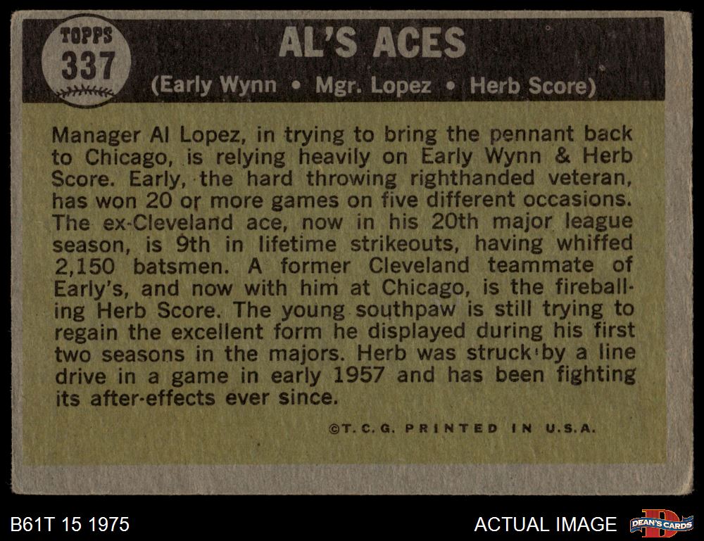 1961 Topps #337 - Al Lopez / Herb Score / Early Wynn Al's Aces 2 - GOOD