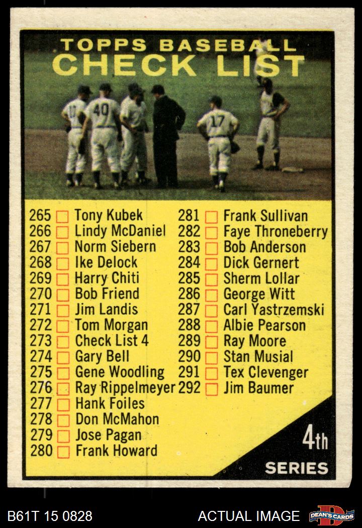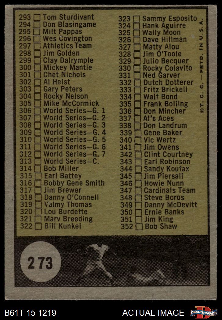1961 Topps #273 CR near #336 or #339 Checklist 4 4 - VG/EX