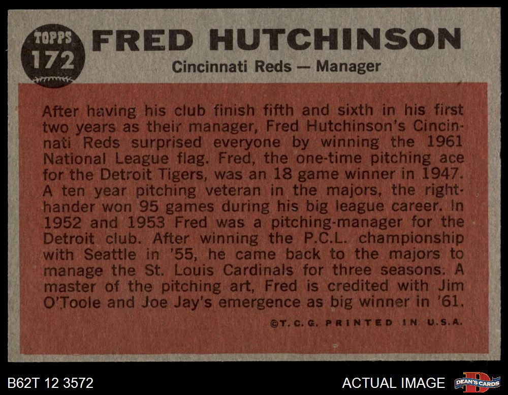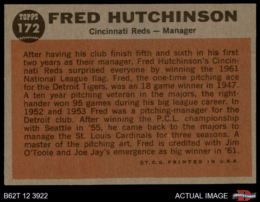 1962 Topps #172 NRM Fred Hutchinson 4 - VG/EX