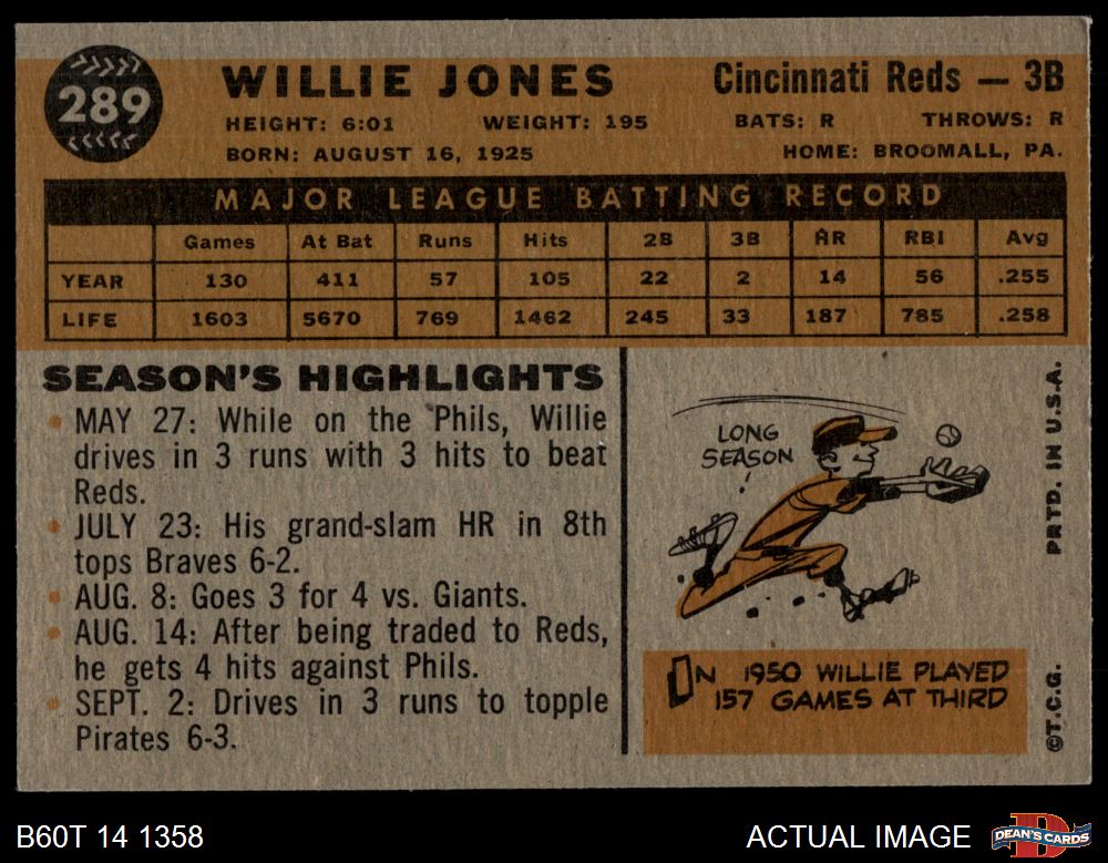 1960 Topps #289 Willie Jones 4.5 - VG/EX+