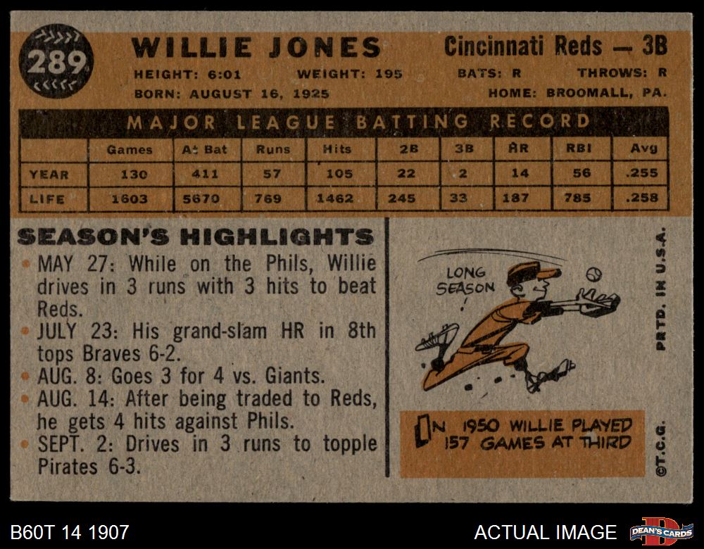 1960 Topps #289 Willie Jones 5 - EX