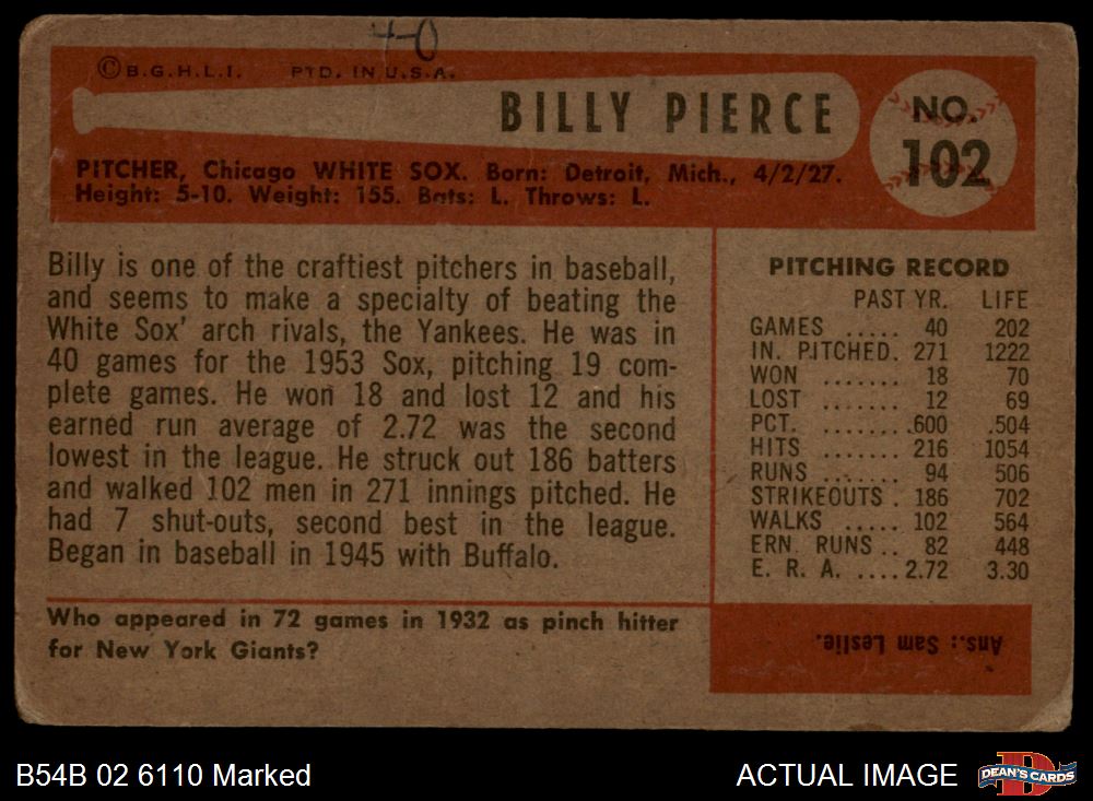 1954 Bowman Baseball Cards (2,239 available)1954 Bowman White Sox (162 available)