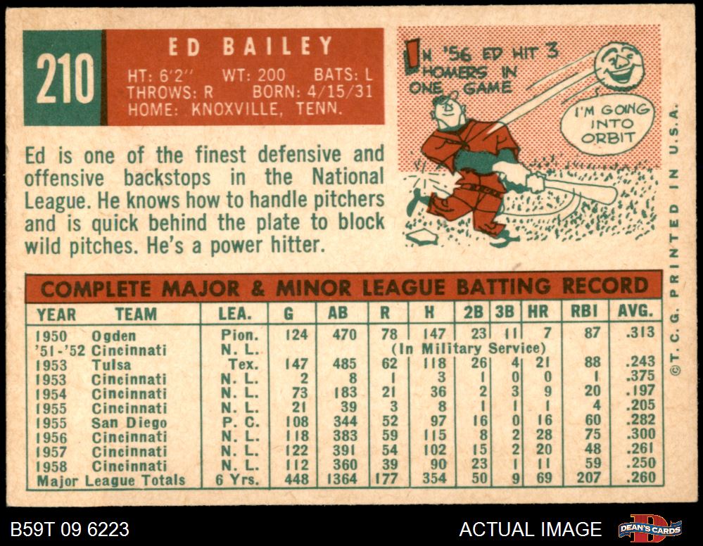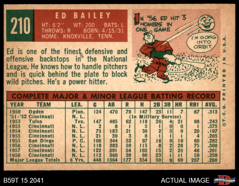 1959 Topps #210 Ed Bailey