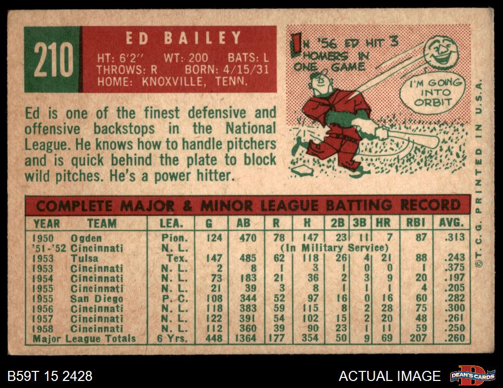 1959 Topps #210 Ed Bailey 2 - GOOD