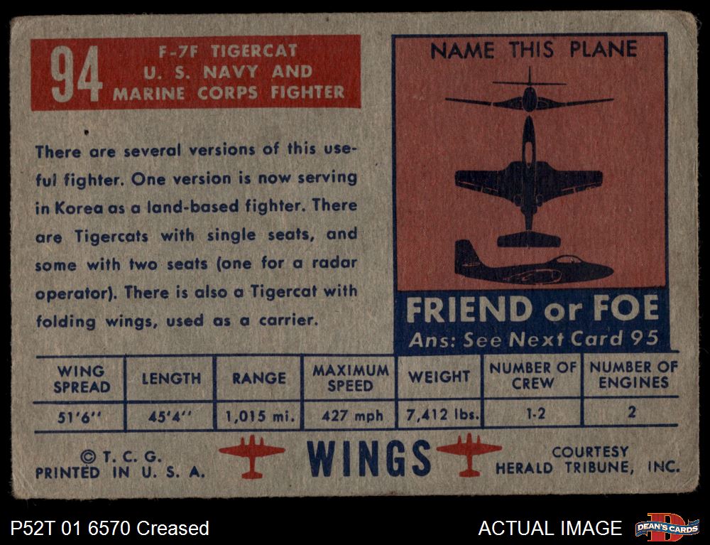 1952 Topps Wings #94  F7F Tigercat Front Thumbnail
