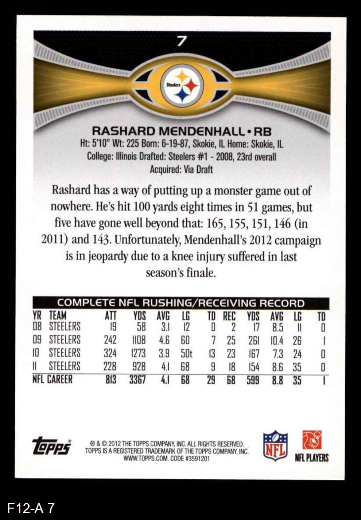 2012 Topps #7 Rashard Mendenhall