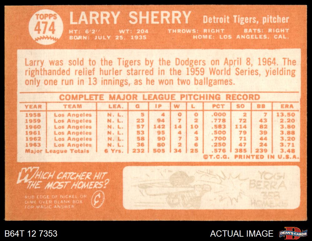 1964 Topps #474 Larry Sherry 4 - VG/EX
