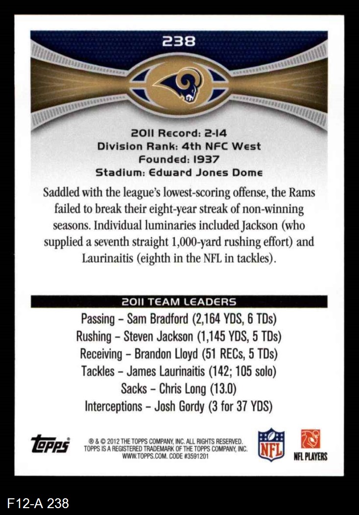 2012 Topps #238 St. Louis Rams